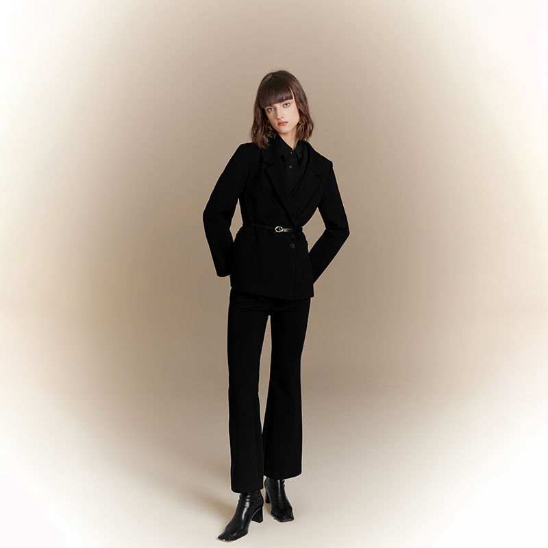 P37220 简洁利落柔软舒适秋新款 TGGC 台绣气质微喇长裤