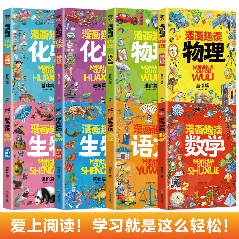 物理 数学 化学 生物 增长知识提高学习兴趣学习更简单 漫画趣读系列全8册 儿童课外阅读书籍 语文