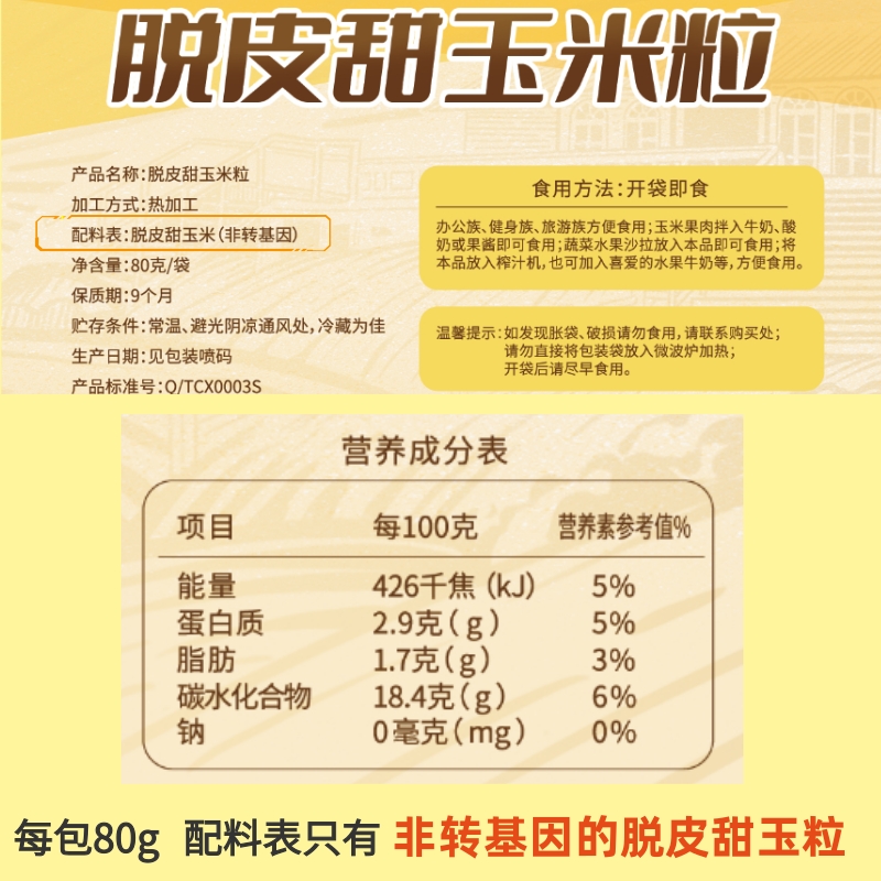 糯氏脱皮甜玉米粒去皮水果玉米粒东北甜糯玉米真空包装 无添加代餐