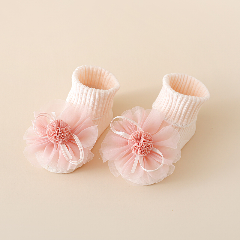 春夏新款 婴儿新生儿宝宝公主满月礼物婴幼儿儿童发带防滑袜子套装