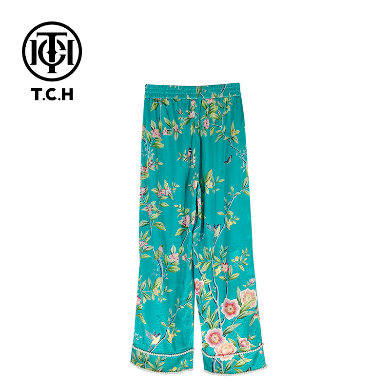 休闲阔腿裤 TCH潮牌夏季 时尚 重工烫钻新中式 T72B20E6019 薄款