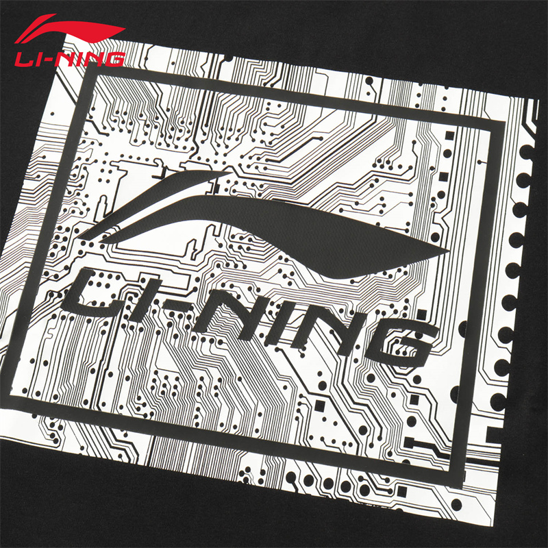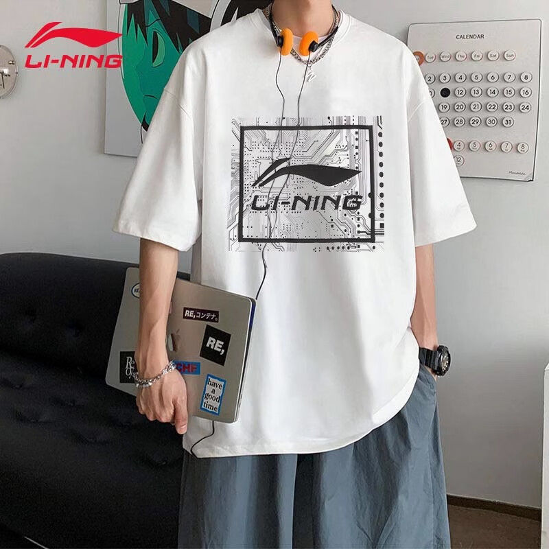 T恤男士 文化衫 夏季 黑色宽松圆领纯棉休闲上衣半袖 潮 新款 李宁短袖