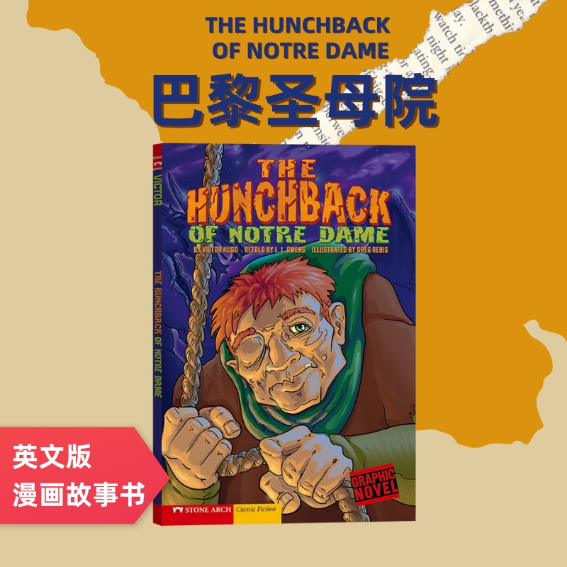 英语小说 文学童话故事绘本英语课外阅读漫画小说 THE NOTRE DAME 巴黎圣母院 HUNCHBACK 儿童经典 全彩漫画经典 自营