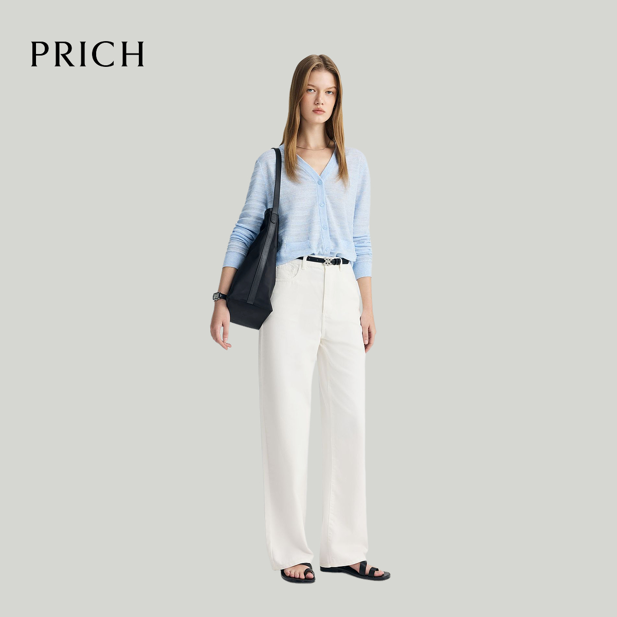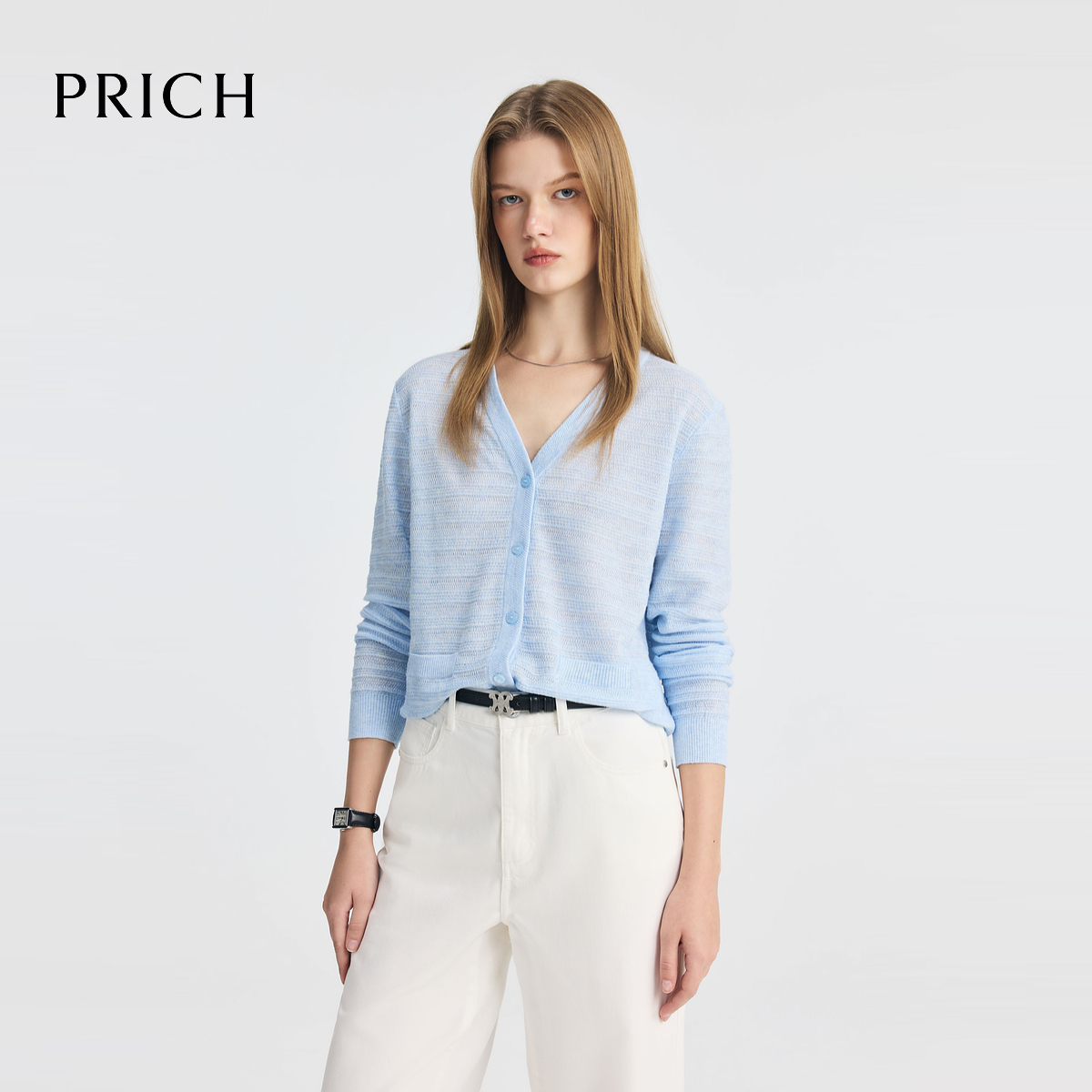 肌理感长袖 PRICH时尚 新款 淡人穿搭2025夏季 上衣女 V领轻薄针织开衫