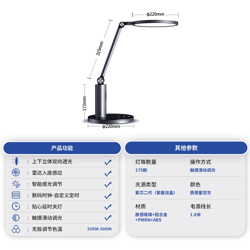 雷士照明aaa级护眼灯近视防控认证台灯学生学习书桌阅读台灯Q1000