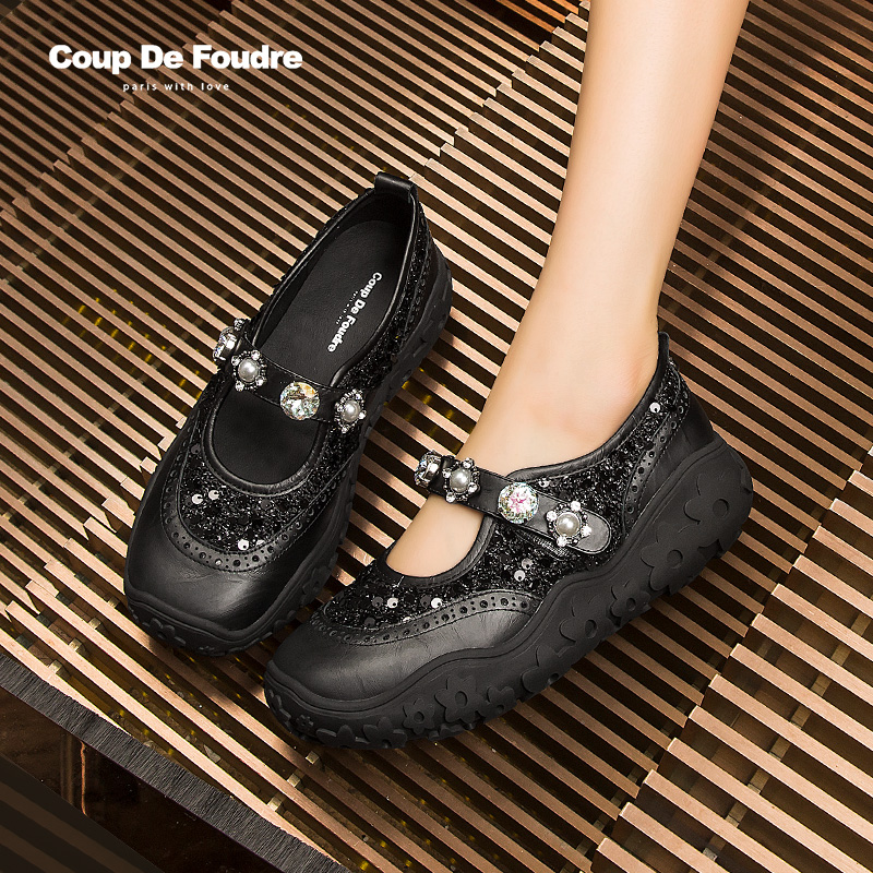 真皮浅口水钻学院风单鞋 CDF女鞋 韩系芭蕾玛丽珍鞋 新款 女 2025春季