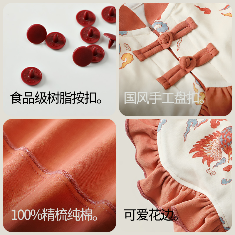 龙喜年婴儿周岁礼服女满月宝宝中式 抓周男百天宴红色连体衣服春秋