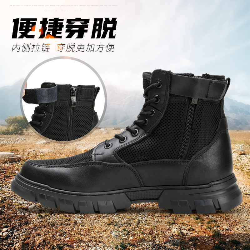 中帮机车靴子男生增高皮靴 2025新款 马丁靴男款 英伦风黑色高帮皮鞋