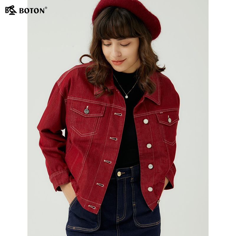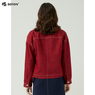 休闲夹克 英伦风高端美式 波顿2025年秋冬新款 女士短外套枣红色时尚