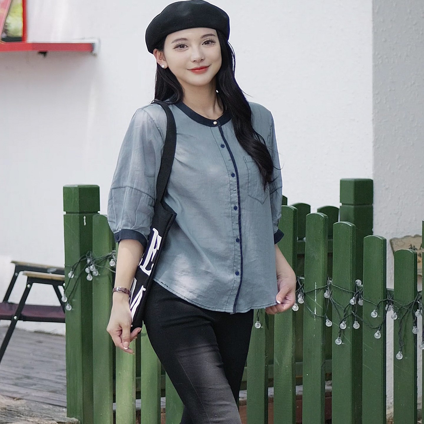 女士拉谷谷春秋长袖 木耳边白衬衫 LAGOGO法式 立领上衣 抗菌抗皱