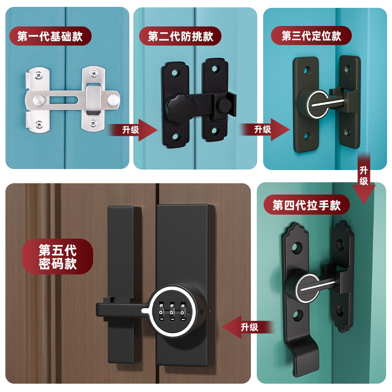 免打孔密码 门插销卫生间门锁扣推拉门平移门栓防盗锁扣锌合金门锁