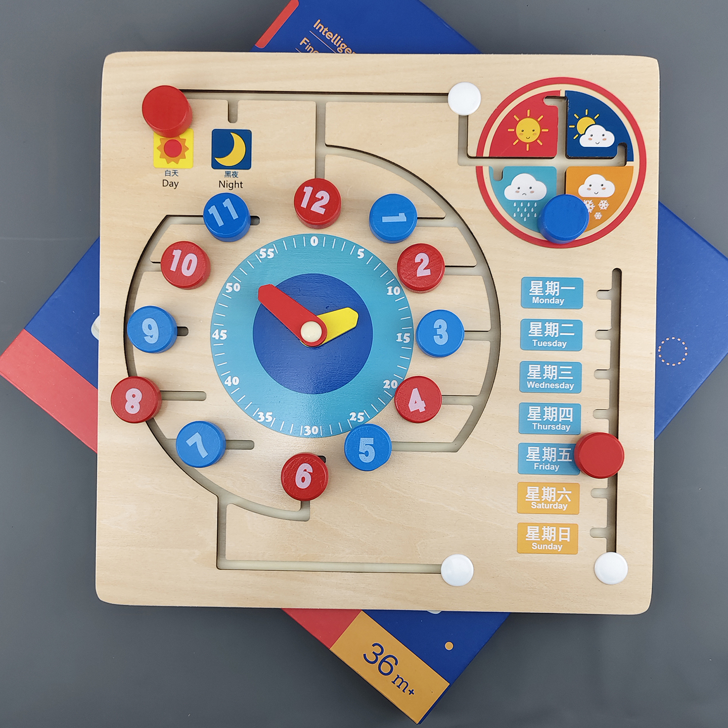 宝宝数字时钟颜色认知教具玩具儿童益智轨道走位迷宫移动手眼协调