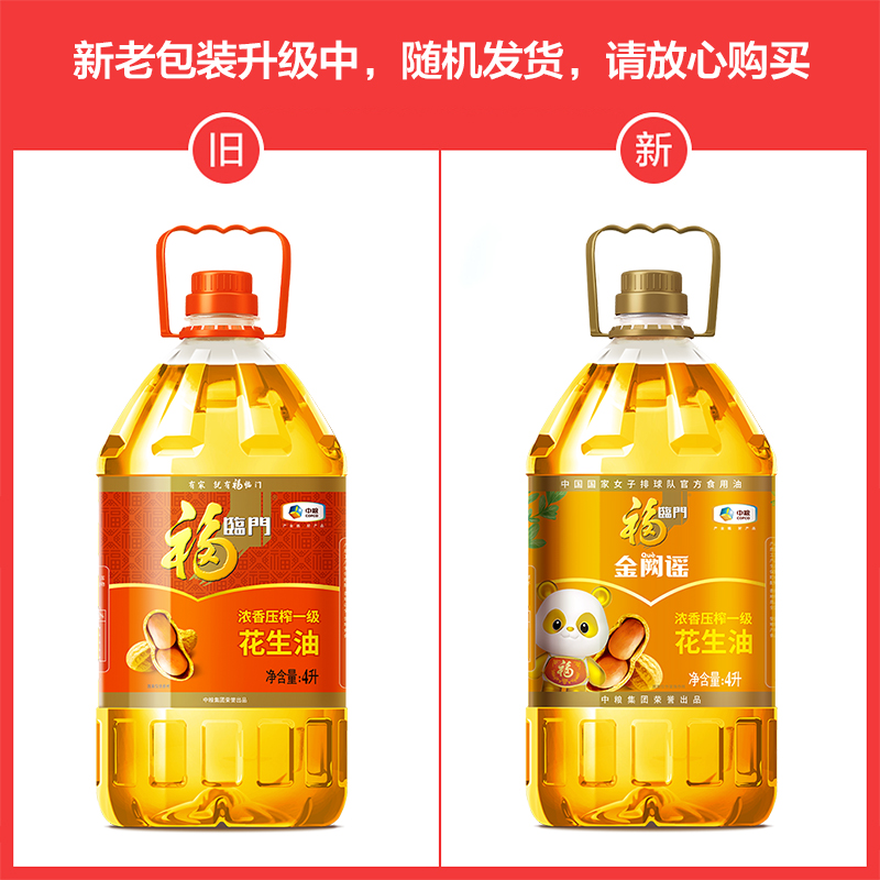 食用油 2桶装 福临门金阙谣浓香压榨一级花生油4L