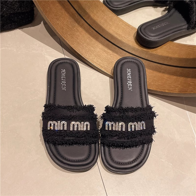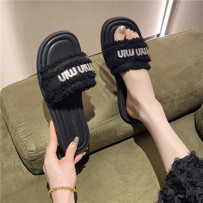 小香风拖鞋 配裙子一字拖沙滩鞋 时尚 网红爆款 孕妇 外穿2025新款 法式