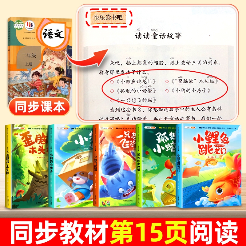 全集寓言 小螃蟹想猫歪脑袋木头桩读读童话一升二上阅读2年级故事正版 小鲤鱼跳龙门二年级上册必读课外书5册快乐读书吧人教版 孤独