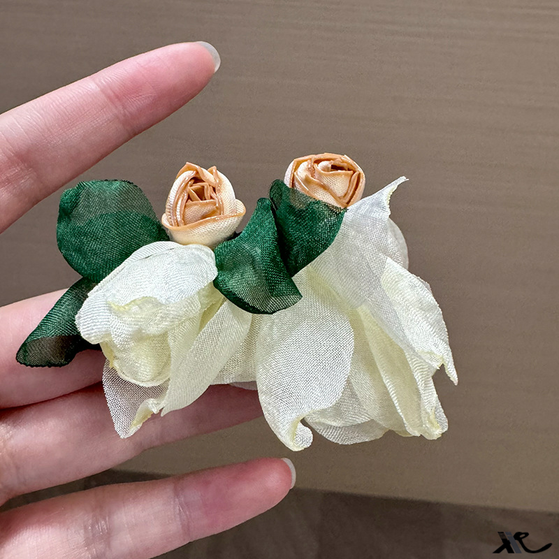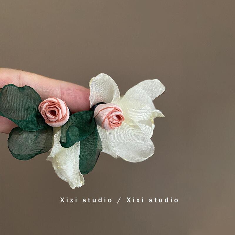 气质小众百搭饰品盘发器新品 高级感玫瑰雪纺花瓣配饰 复古 法式