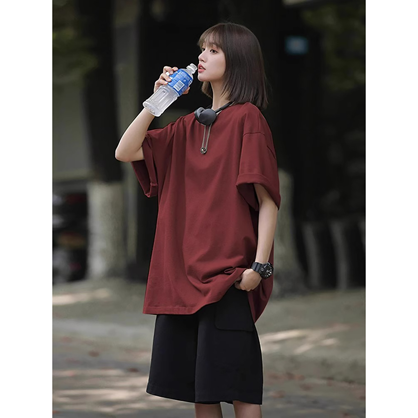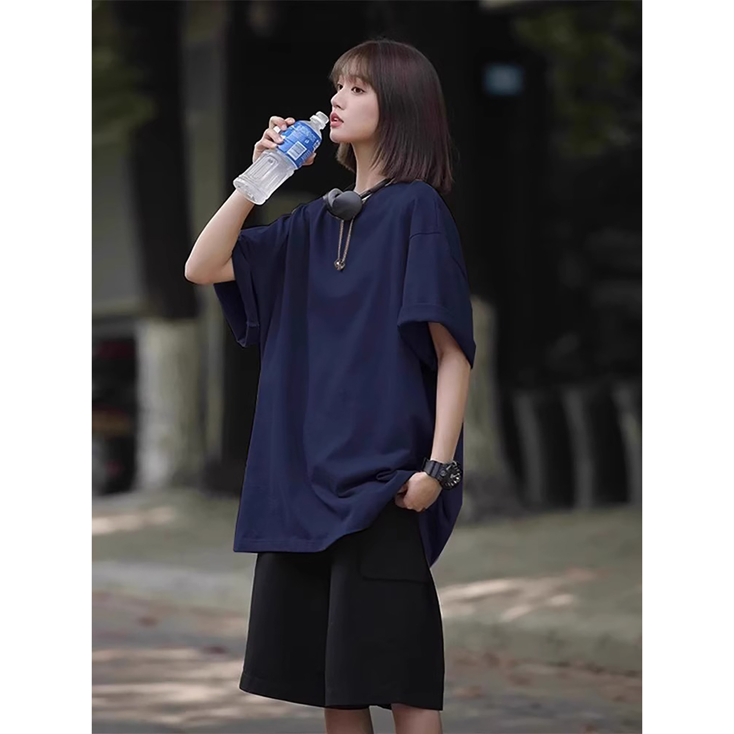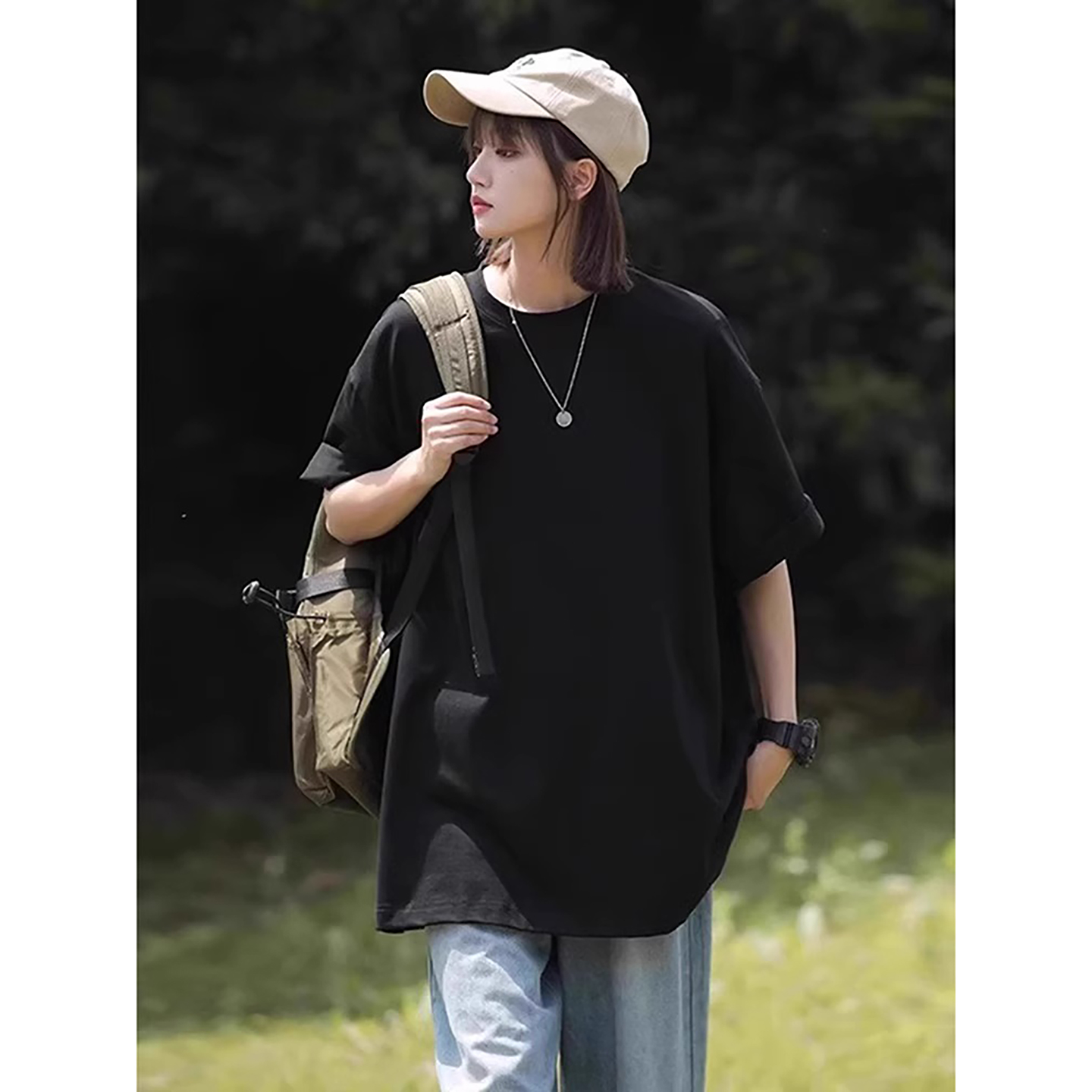 情侣半截袖 小领口美式 新疆棉正肩短袖 葡萄紫日系少年感t恤男夏季
