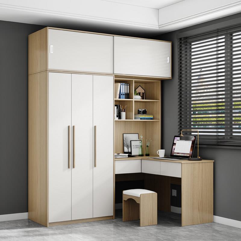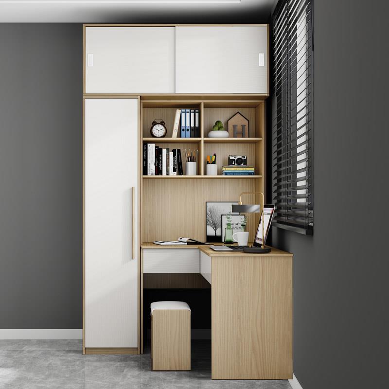 现代中式 L型转角电脑桌衣柜小户型学生写字台 卧室家用连体书桌柜