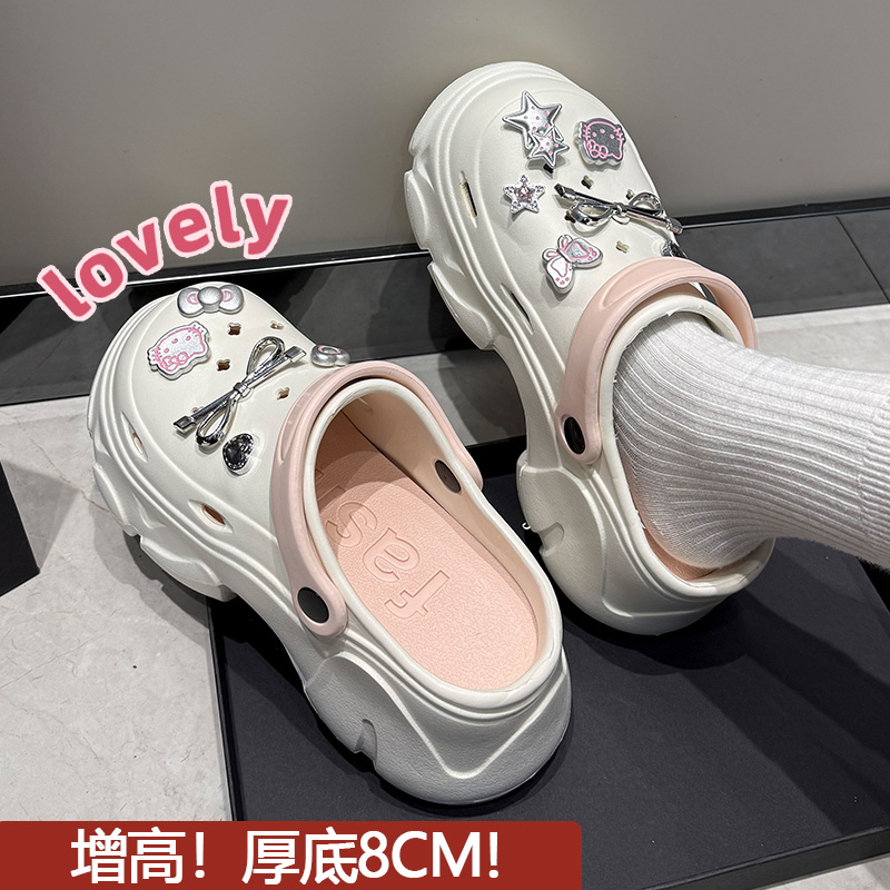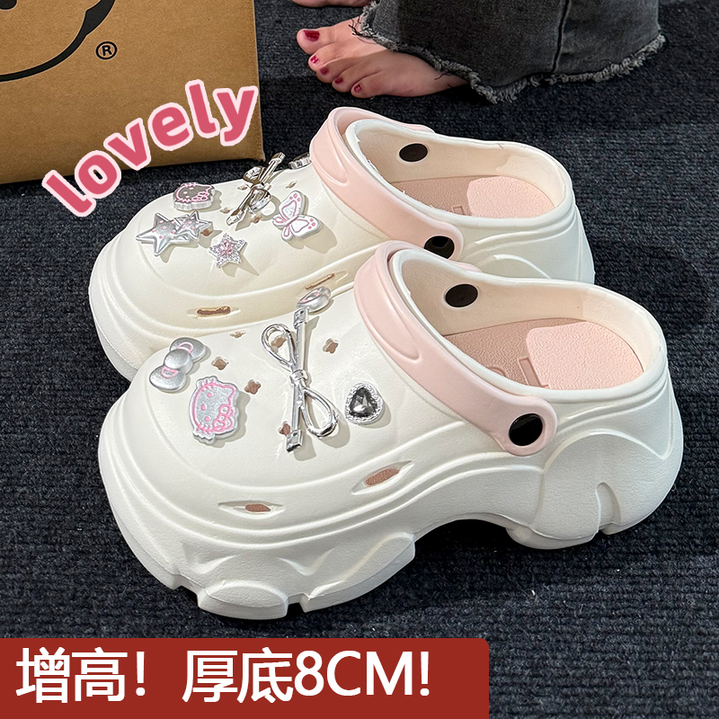 外穿eva防滑防臭增高沙滩凉鞋 8.0CM厚底洞洞鞋 夏季 2025新款 女 女款