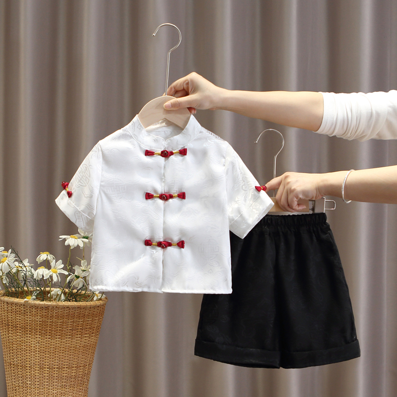 新中式 抓周服套装 唐装 服装 婴儿生日衣服男童中式 宝宝周岁礼服夏季