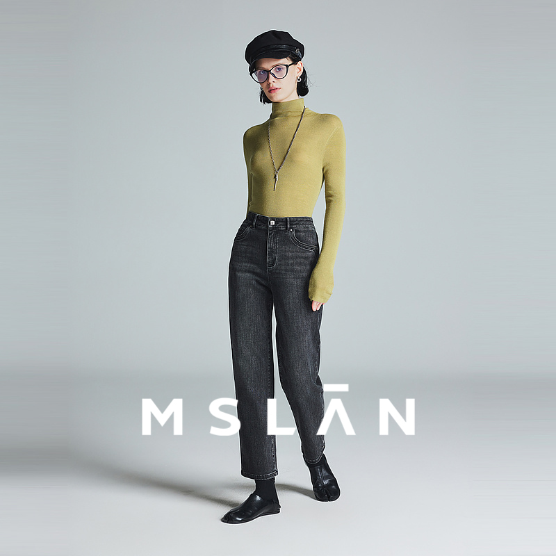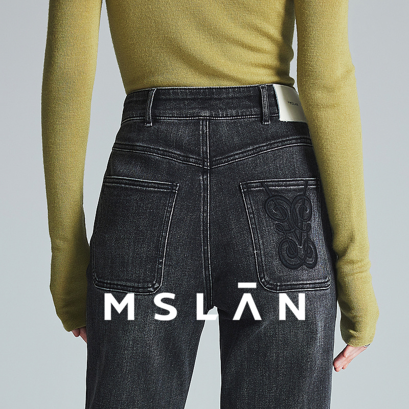 显瘦弹力牛仔裤 磨毛黑色修身 25秋冬时尚 MSLAN做旧牛仔