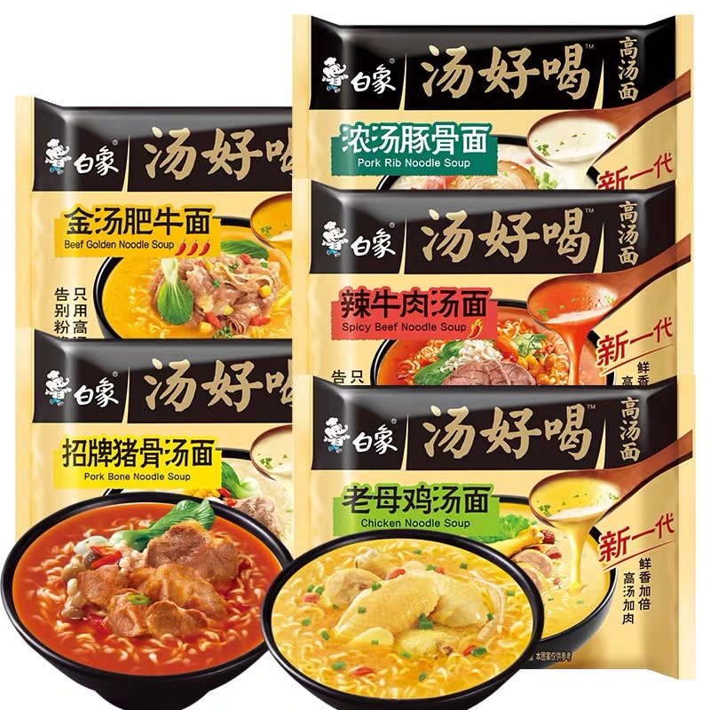 国货白象汤好喝10袋装 老母鸡猪骨汤牛肉汤速食冲泡方便面整箱批发