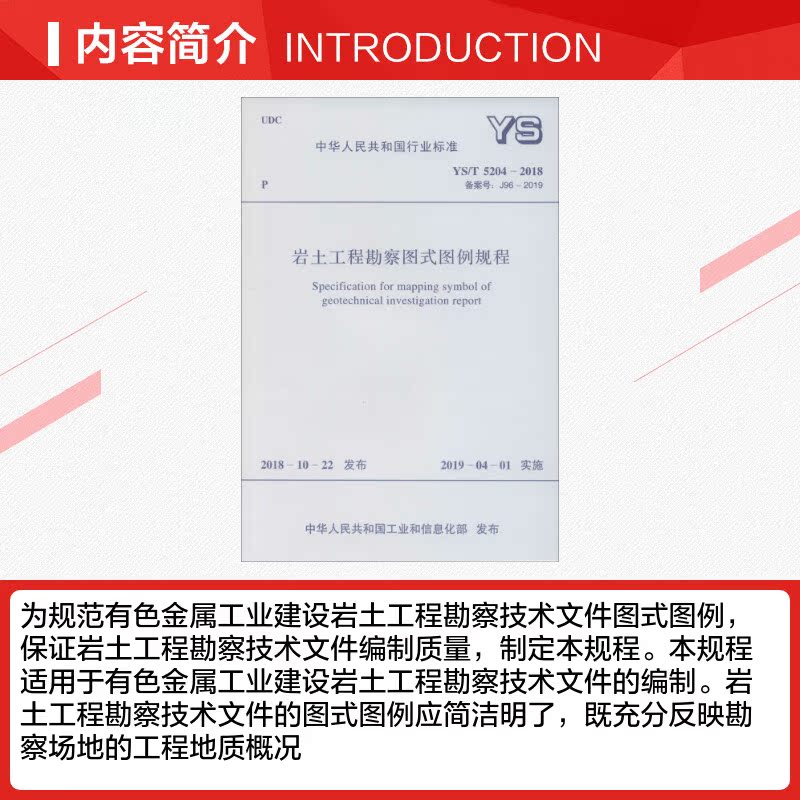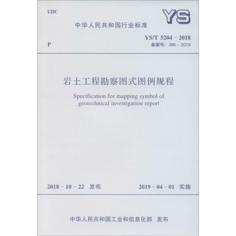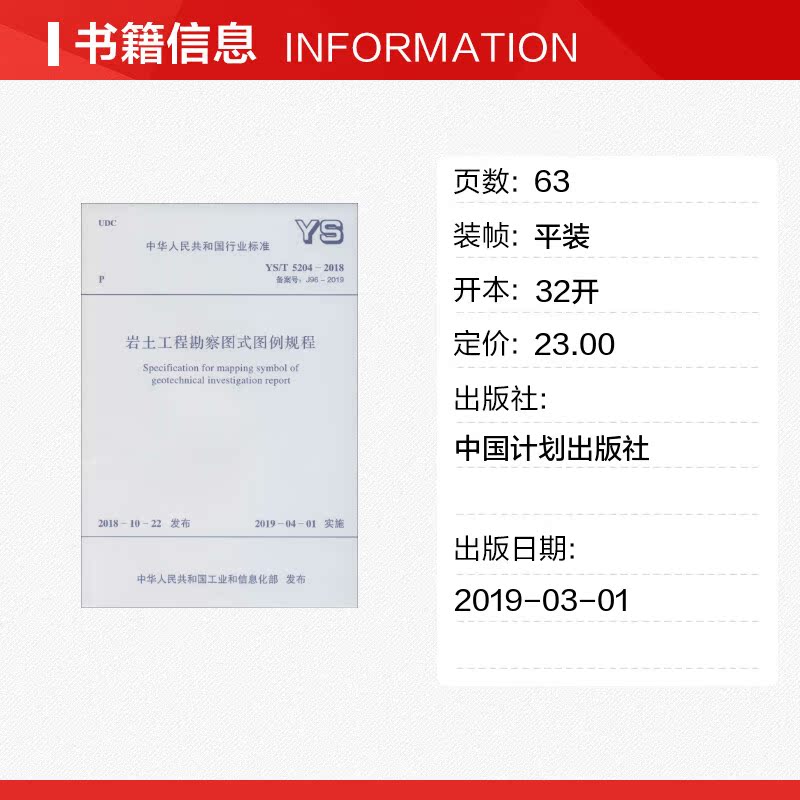 5204 J96 图例规程 水利 专业科技 岩土工程勘察图式 建筑 2018 中国有色金属工业协会 2019 备案号 新 著