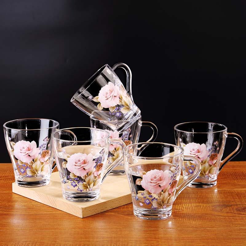 6只杯子家用玻璃杯整套印花客厅中式 小清新环保水杯 茶杯水具套装
