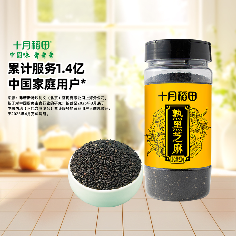 十月稻田熟黑芝麻200g五谷杂粮即食烘焙伴熟白芝麻罐装 半日达