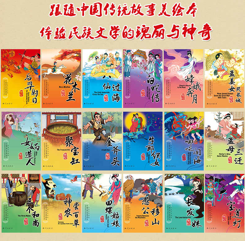 少儿英语双语读物 古代神话故事书大全3 10岁儿童中英文对照图书籍中国民间故事传说哪吒传奇 中国传统故事美绘本全套18册
