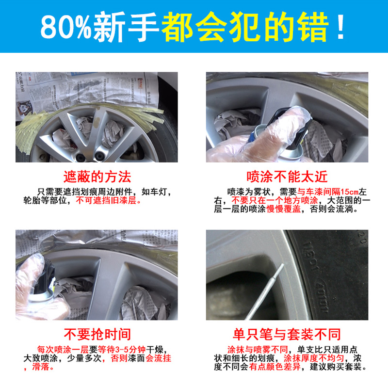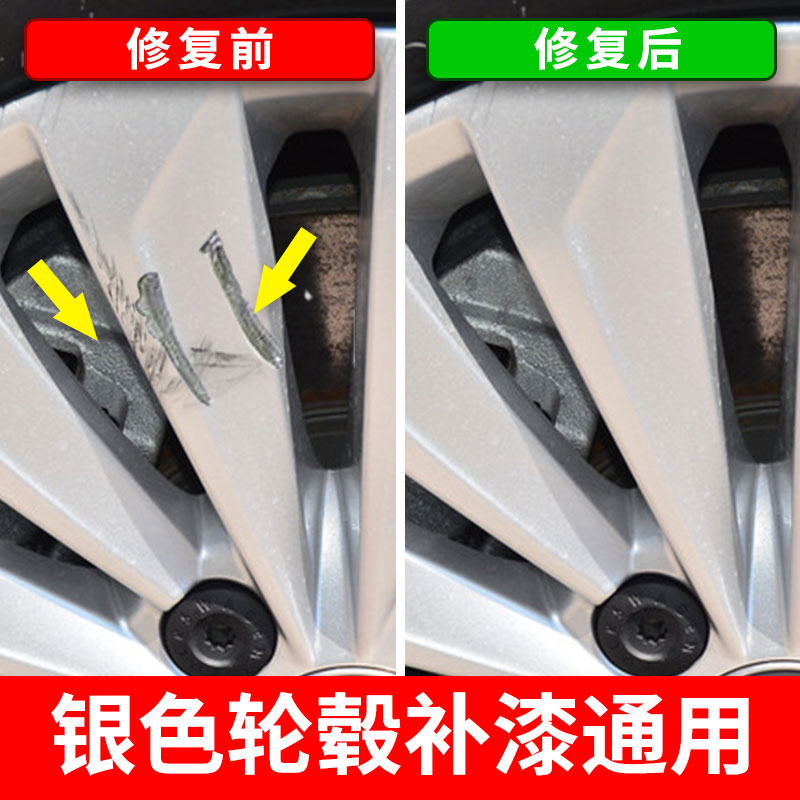 汽车轮毂补漆笔亮黑色划痕修复缺口铝合金修补翻新改色银色自喷漆