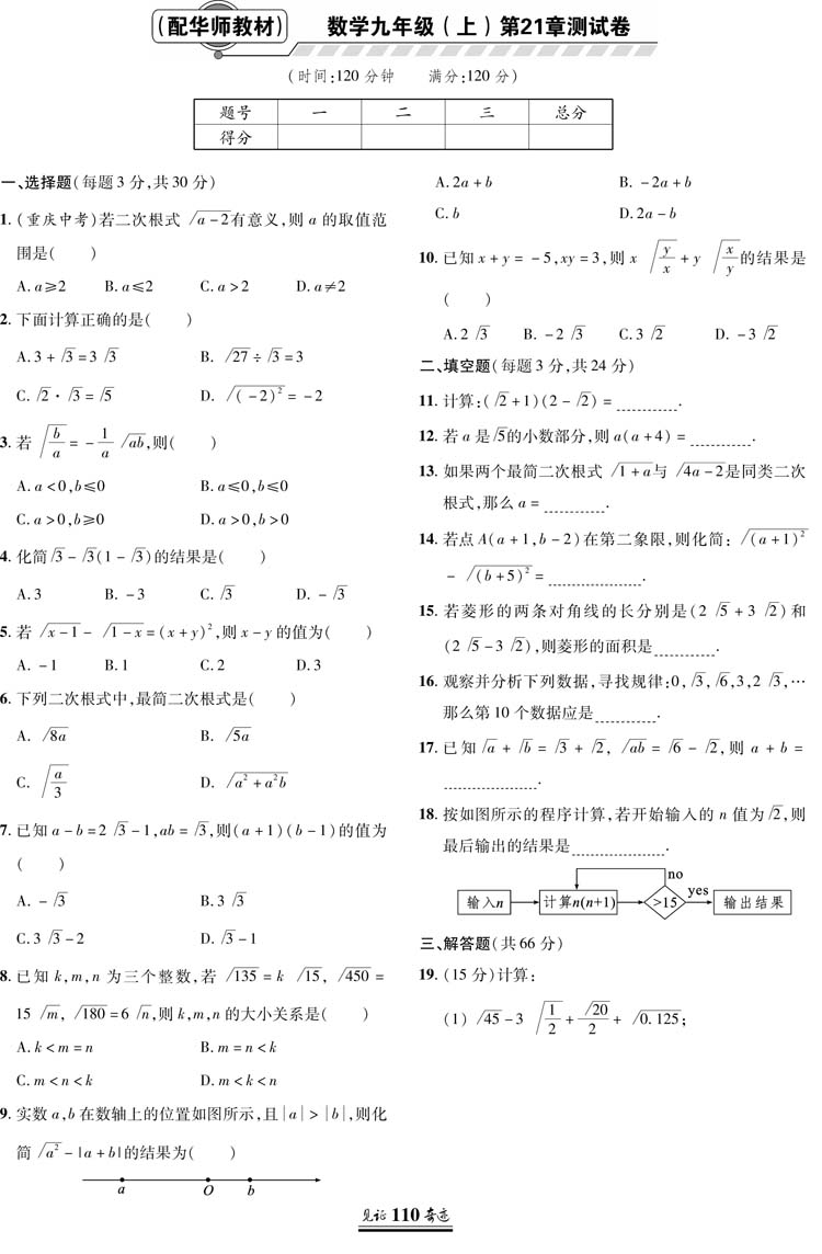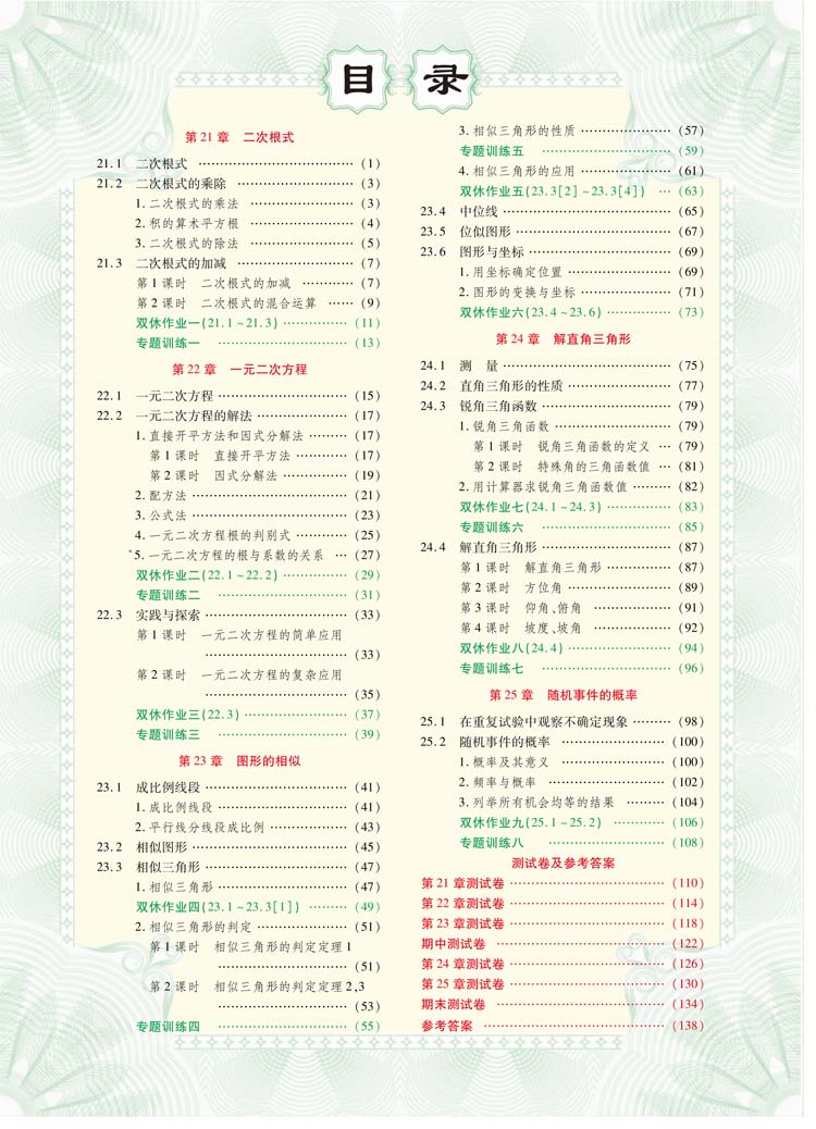 同步单元 见证奇迹 英才学业设计与反馈 秋季 测试卷 华师版 配华师版 九年级上 9九年级数学上册 教材 数学 同步练习