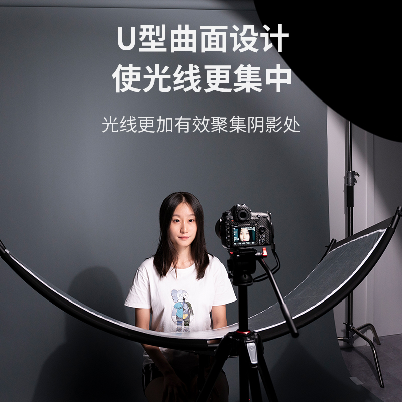 U型反光板曲面摄影弧形眼神证件照肖像照便携补光板反光屏柔光板人像拍照背景金银黑白四色合一u形反光板支架