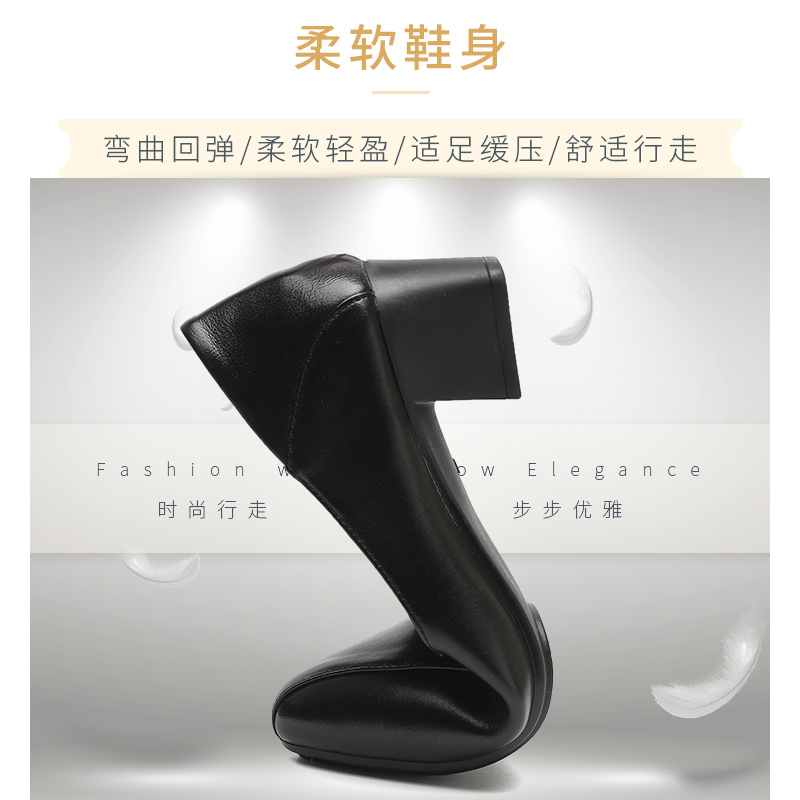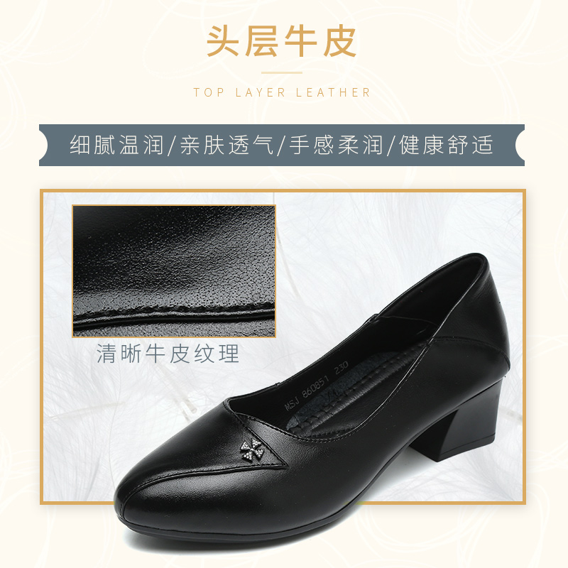 时尚 职场工作鞋 粗跟中年女鞋 妈妈鞋 女清仓 大码 旺奈真皮浅口女单鞋