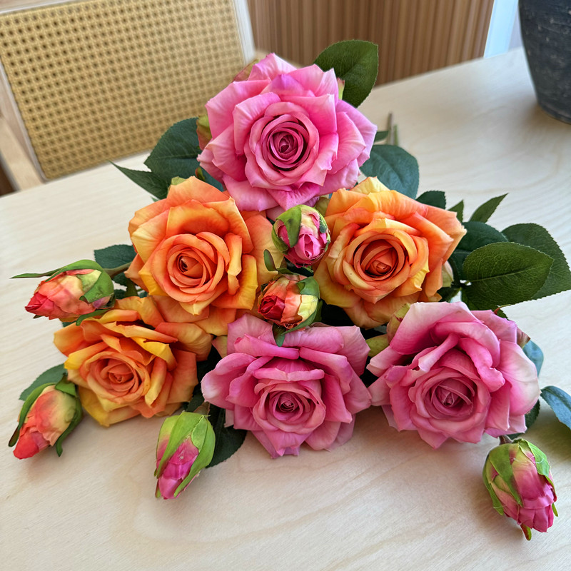 装 玫瑰花仿真假花束欧式 饰绢花客厅餐桌摆放婚庆 奥斯丁保湿 6支装