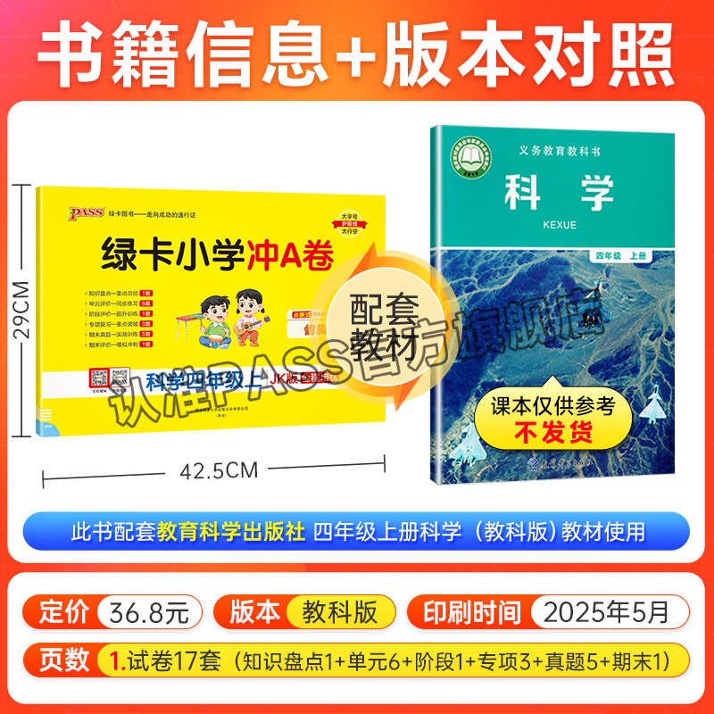 期中期末总复习计算冲刺PASS绿卡图书 科学小学学霸冲A卷三四年级五六同步测试卷上下册提优真题训练学生模拟单元 25新版 教科版