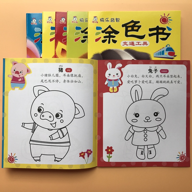 幼儿园学画动物涂色入门涂鸦填色学画画本宝宝绘画书图画册 全套6本儿童画画书2 6岁涂色本 幼儿园宝宝儿童阶梯涂色画第4阶段