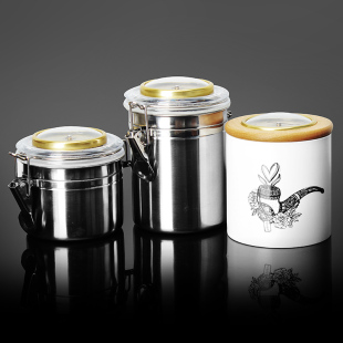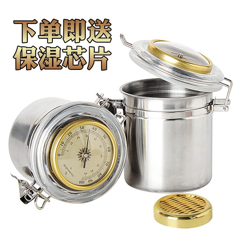 罐不锈钢密封香菸罐防潮储存雪茄盒陶土带湿度计 烟斗烟草保湿 包邮