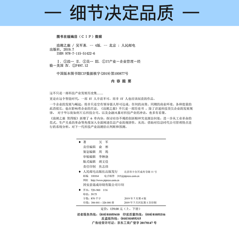 深度剖析信息产业 数学之美文明之光大学之路见识态度全球科技通史吴军作品 智能时代指南 第四4版 浪潮之巅