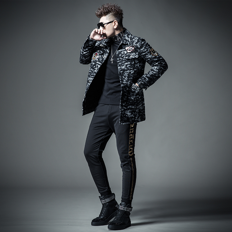 韩版 长款 呢子加厚风衣外套 2025春秋季 V37黑色高级感毛呢大衣男款