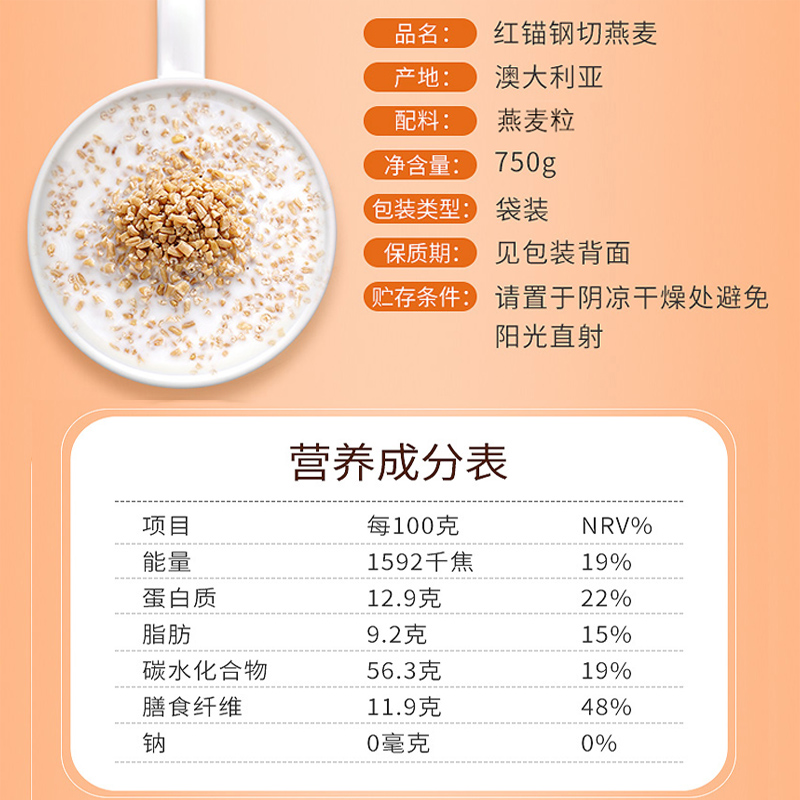 澳洲钢切燕麦粒刀切麦片全谷物燕早晚餐代餐燕麦米750g原装 进口