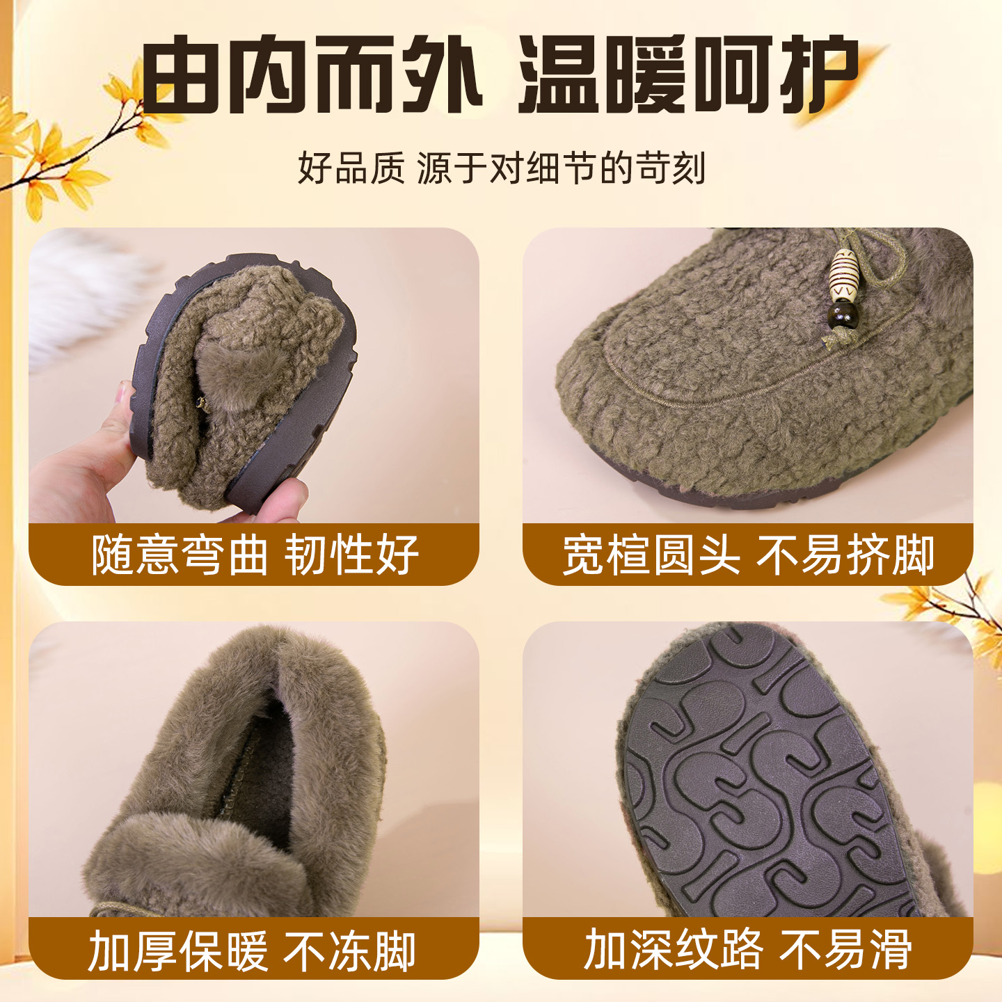 软底妈妈毛毛鞋 豆豆鞋 一脚蹬防滑保暖棉鞋 老北京布鞋 女冬加绒新款
