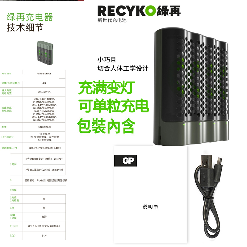 1.2v镍氢充电电池通用智能五号七号充电器正品 GP超霸5号7号电池充电器 USB供电8小时快速智能变灯断电充电器