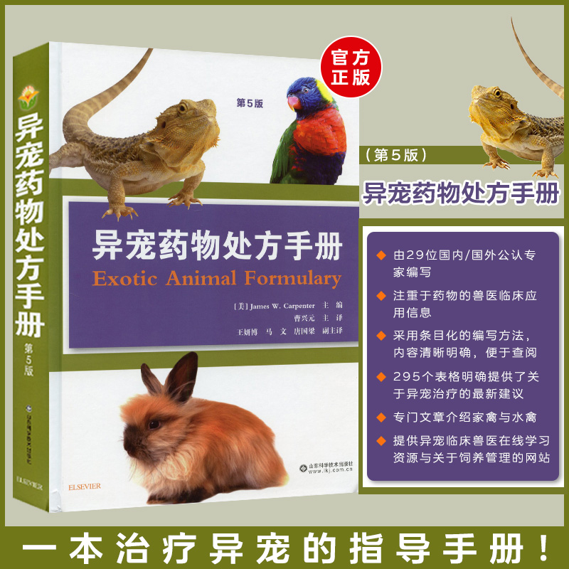 兽医图书 异宠疾病书籍鸟病蜥蜴疾病兔病用药指南 宠物处方手册异类宠物疾病管理 第5版 异宠药物处方手册