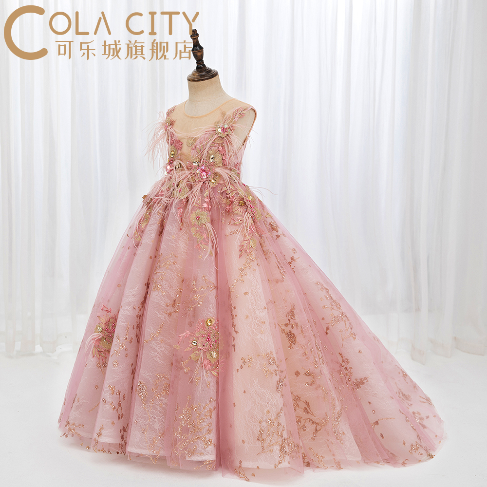 女童礼服公主裙拖尾高端洋气宝宝女花童婚纱小模特走秀钢琴表演服