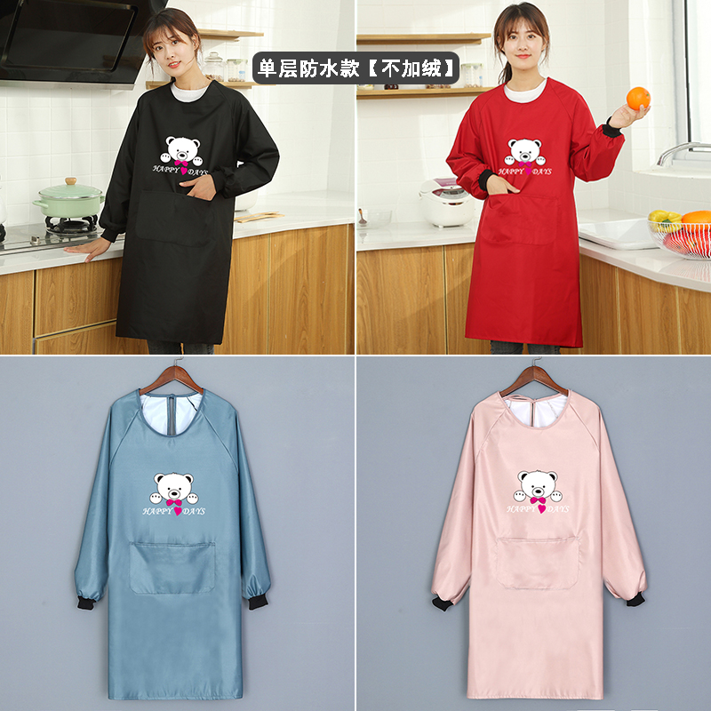 家用厨房防水防油围裙餐饮专用成人工作服长袖 罩衣女做饭围腰男士