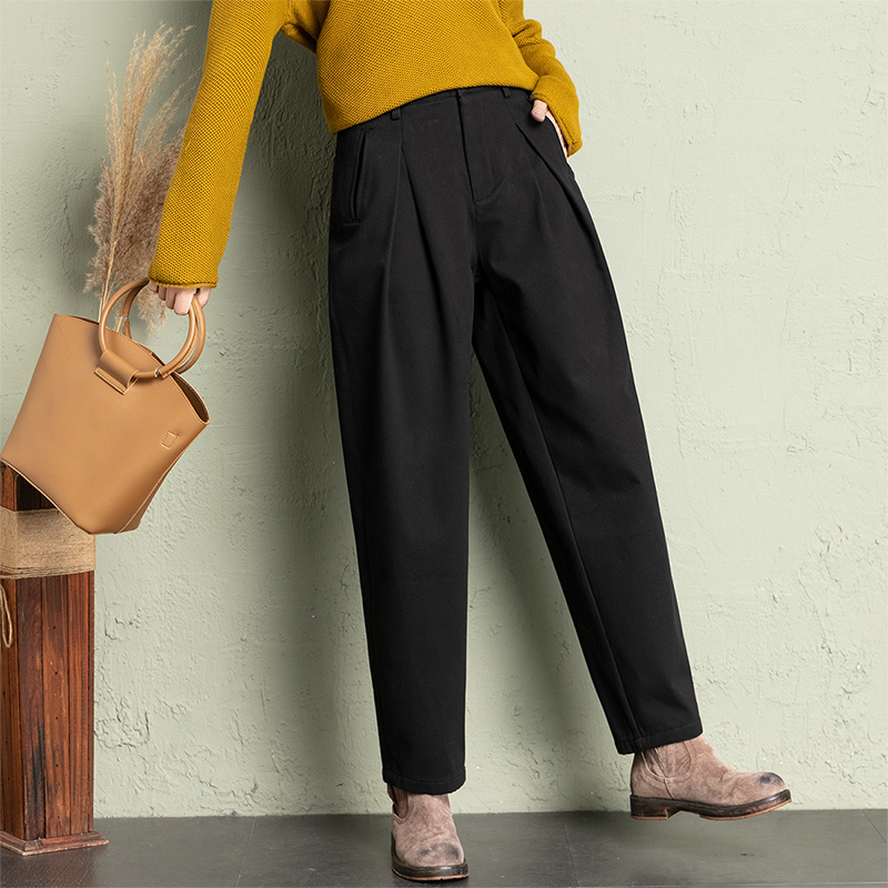 韩版 阔腿长裤 萝卜裤 休闲款 百搭 纯棉加绒哈伦裤 加厚棉裤 女高腰大码