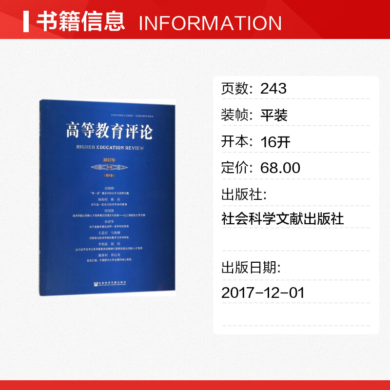 主编 社会科学其它文教 新华书店正版 高等教育评论2017年.第2期 社会科学文献出版 杨灿明 图书籍 社 第5卷