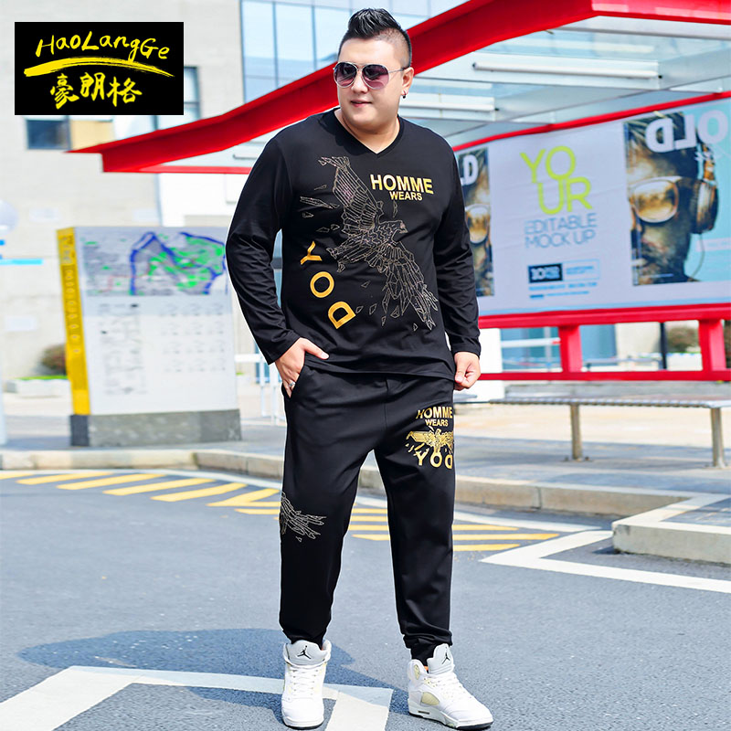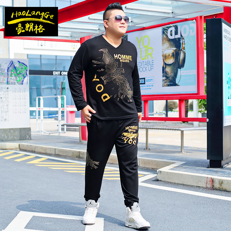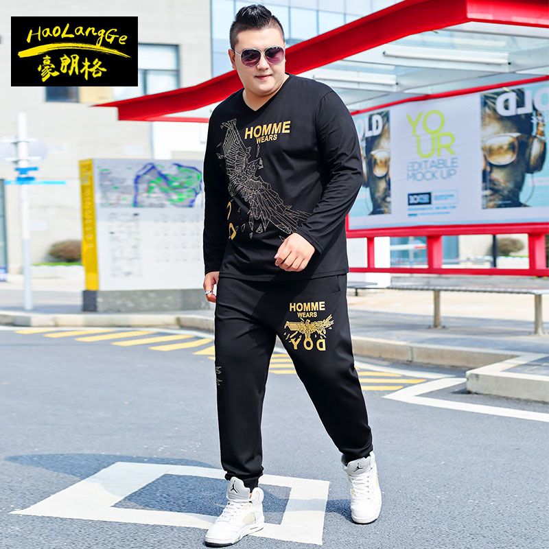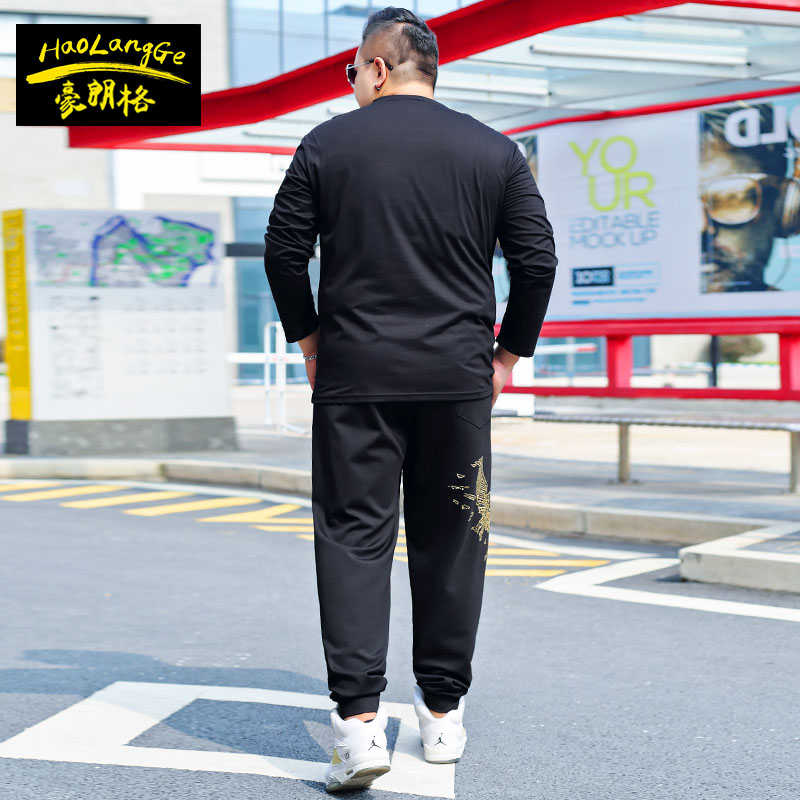 加肥加大码 男潮胖子卫衣裤 长袖 休闲套装 子运动两件套 t恤卫裤 秋季