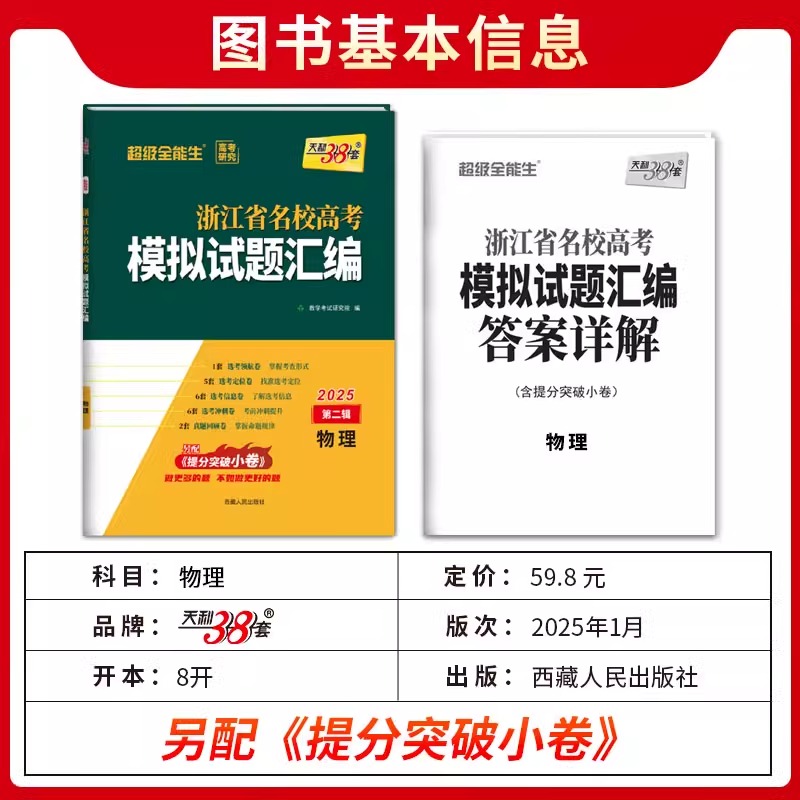 高考刷题复习联考测评模拟卷高三轮总复习刷题卷子6月高考必刷卷 物理 2025版 天利38套浙江省新高考名校模拟试题汇编第二辑1月版